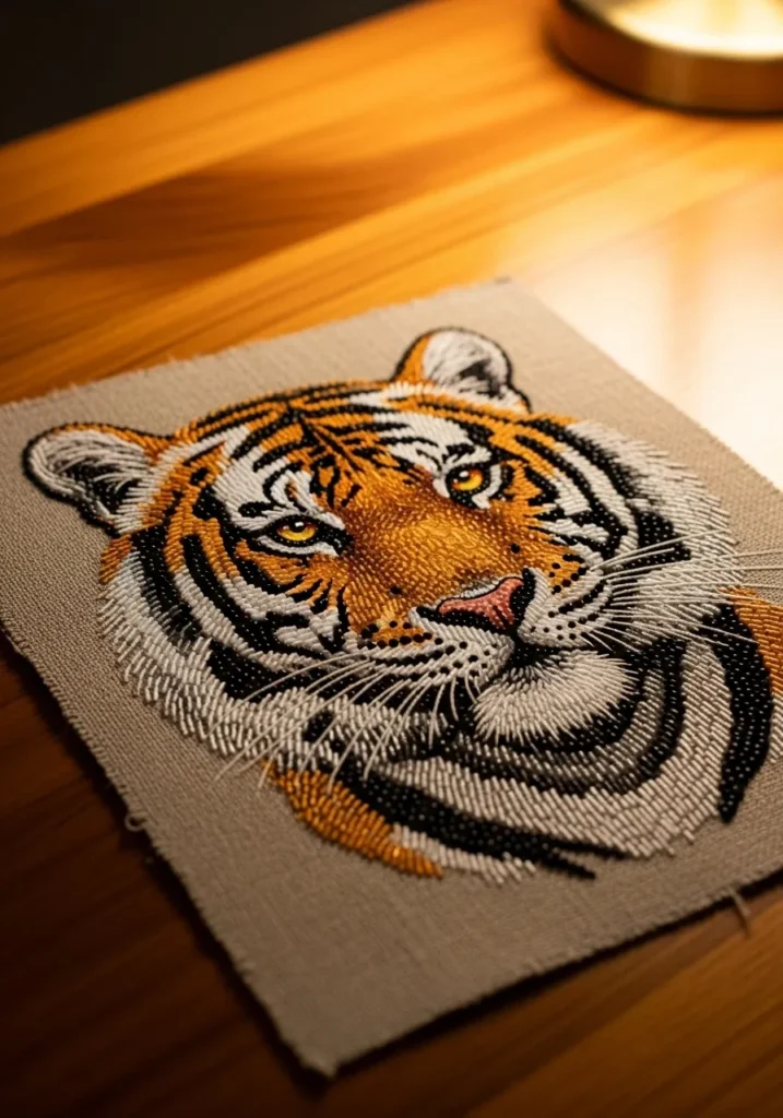 Realistic Tiger Portrait Beadwork Embroidery Panel