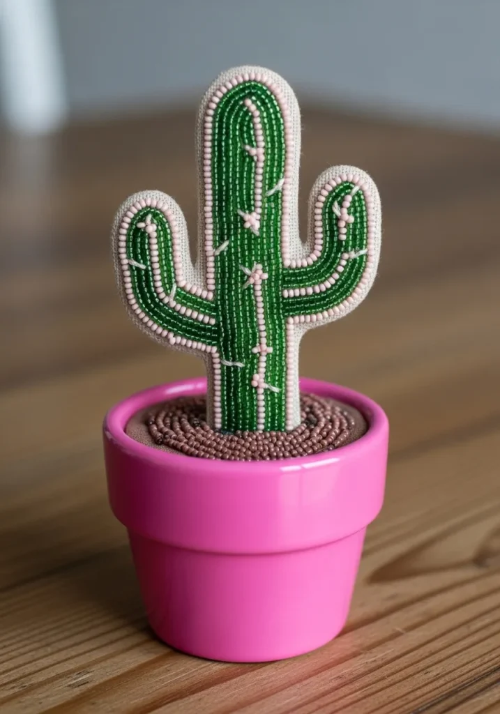 Beaded Cactus Mini Sculpture Embroidery Accent