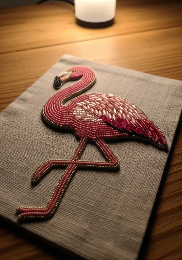 Elegant Flamingo Beadwork Embroidery Design