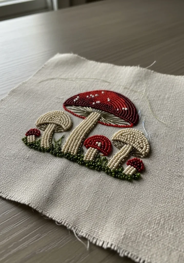 Whimsical Woodland Mushroom Beadwork Embroidery