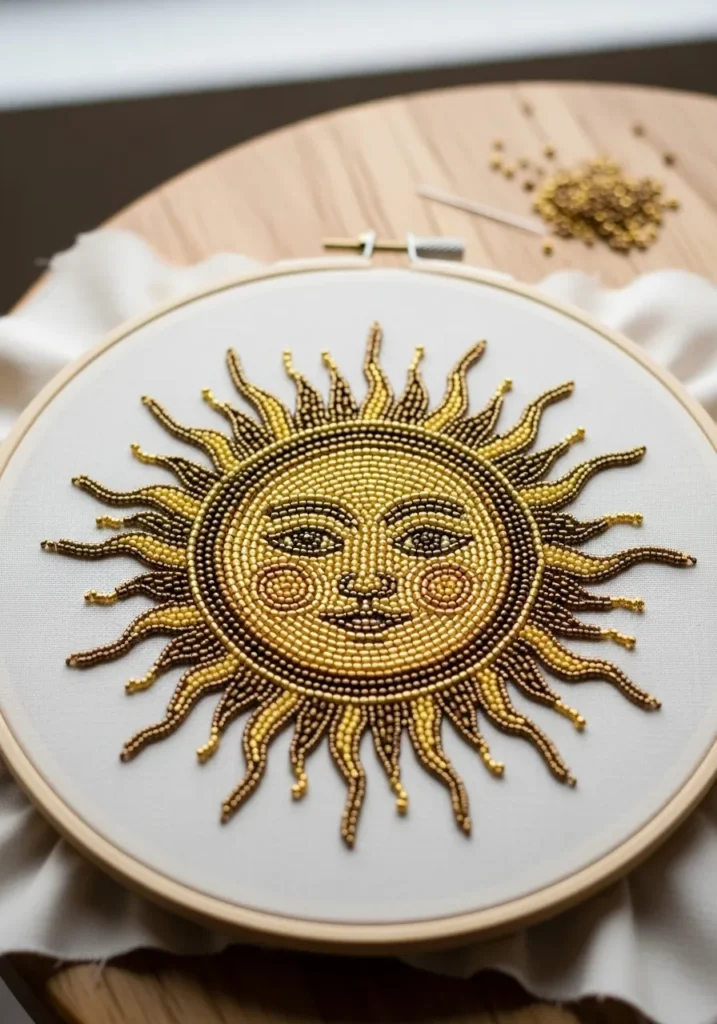 Radiant Sun Face Beadwork Embroidery Hoop