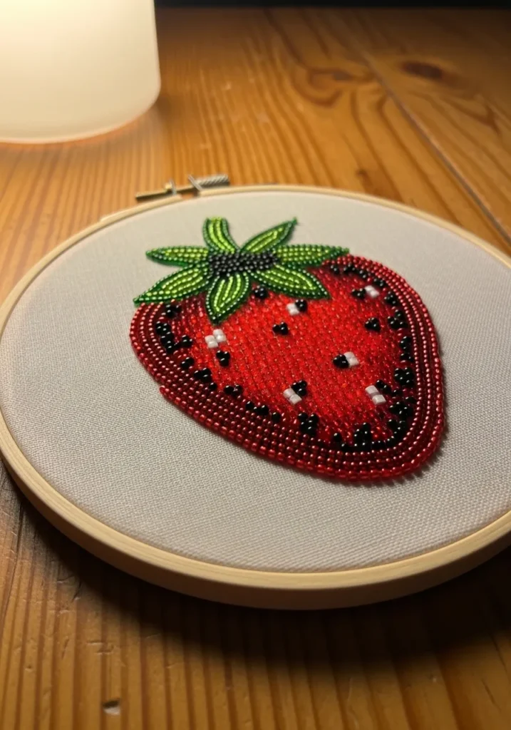 Juicy Strawberry Beadwork Embroidery Hoop