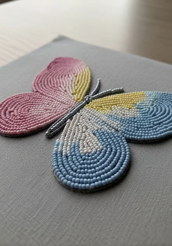 I love how this kind of design looks intricate but is actually quite approachable. If you enjoy working with color, creating those soft gradients is such a satisfying process. It feels a bit like painting with beads, just in tiny rows instead of brushstrokes. This would look gorgeous on a jacket, a tote, or framed as sweet wall art. It is playful, feminine, and modern all in one little fluttery package.