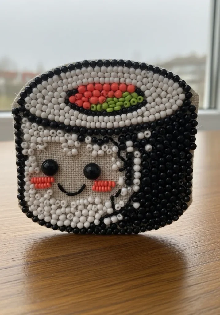 I am obsessed with how fun this is. If you love quirky designs, this kind of beadwork is such a joy to make. The round shape keeps it simple, and filling in each section with different colors feels like coloring in a tiny edible masterpiece. It would be adorable on a tote bag or denim jacket, and it instantly adds personality to anything you attach it to. Projects like this remind me that embroidery does not have to be serious to be stunning.