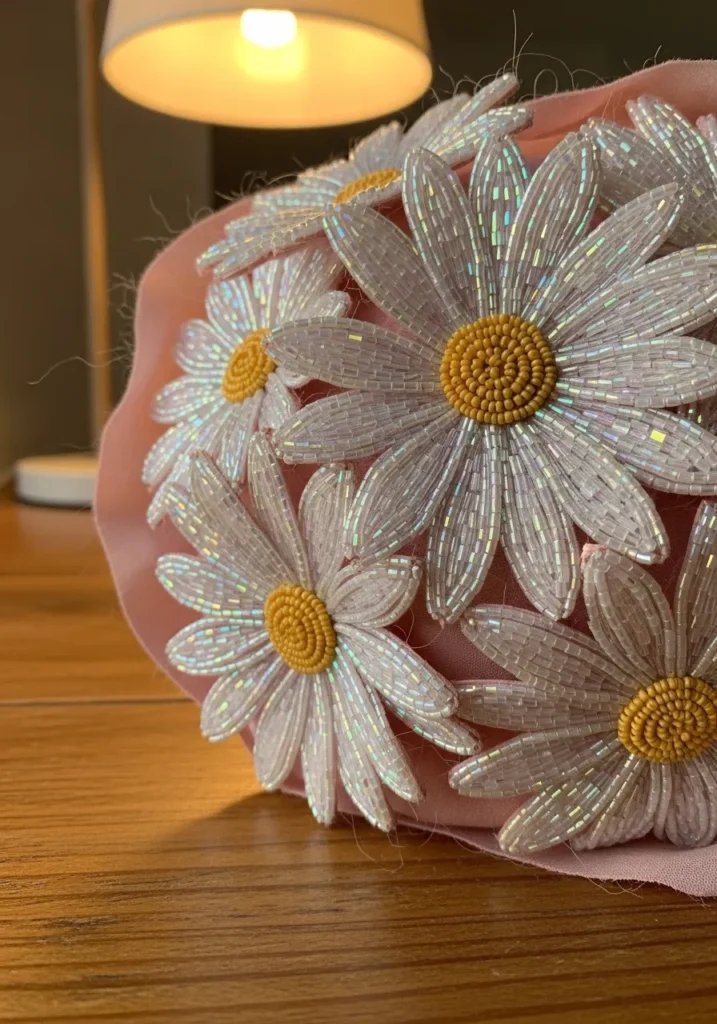 Shimmering Daisy Beadwork Embroidery Statement Piece