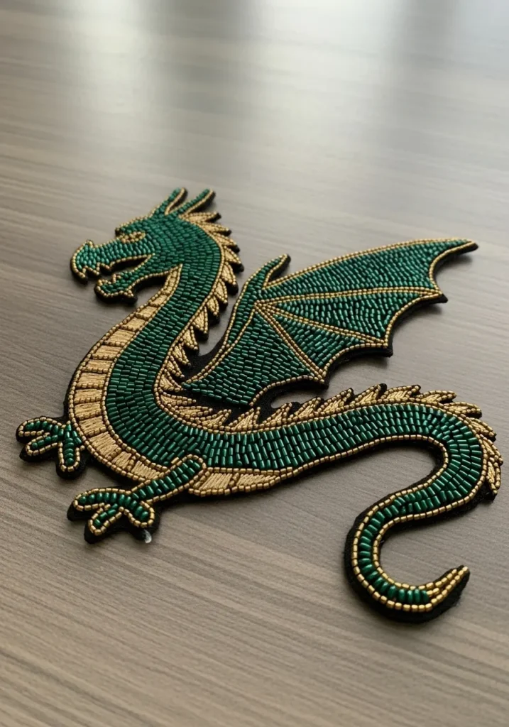 Emerald Dragon Beadwork Embroidery Appliqué