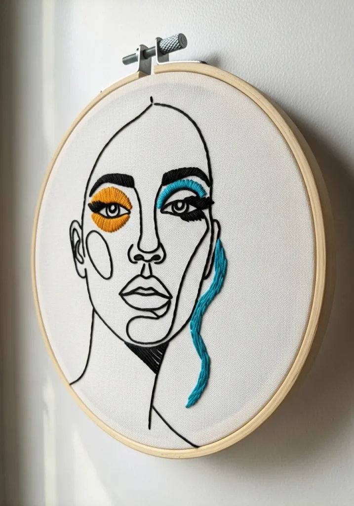 I am always drawn to face embroidery like this because it instantly makes a statement on any wall. It feels trendy and expressive without being complicated. This kind of design is perfect if you want your embroidery to look like contemporary art rather than traditional needlework.