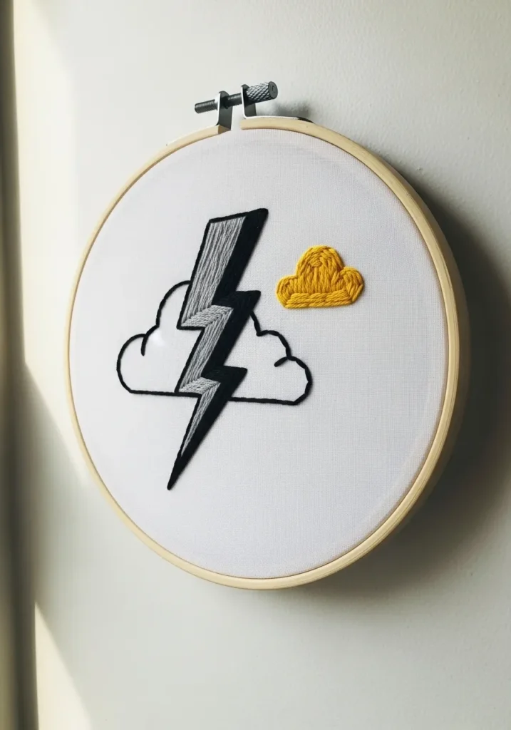 Minimalist Lightning and Cloud Embroidery