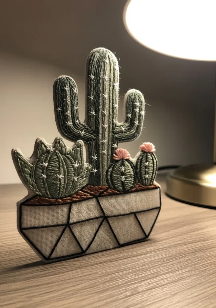 • Minimalist Cactus Embroidery Decor
