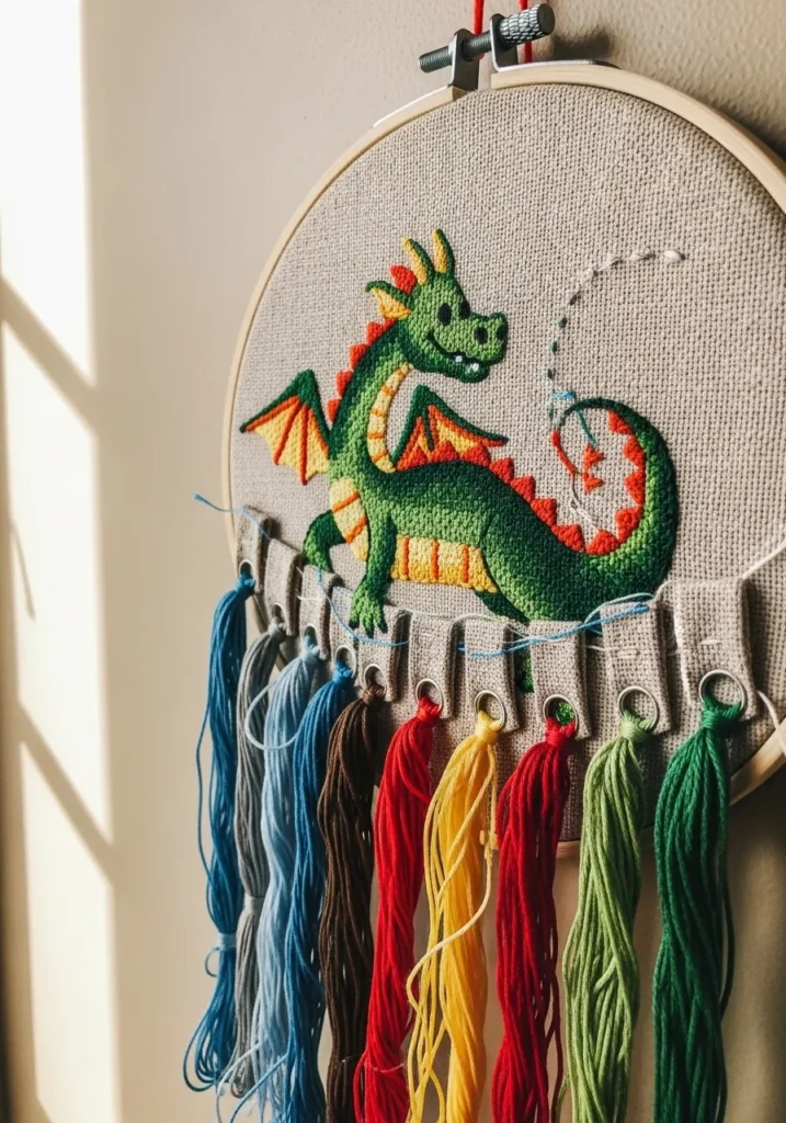 I love when storage ideas feel a little unexpected. A dragon design adds personality to a craft space while still keeping threads easy to reach. It is the sort of project that feels creative and slightly whimsical, which makes the whole embroidery corner more inspiring.