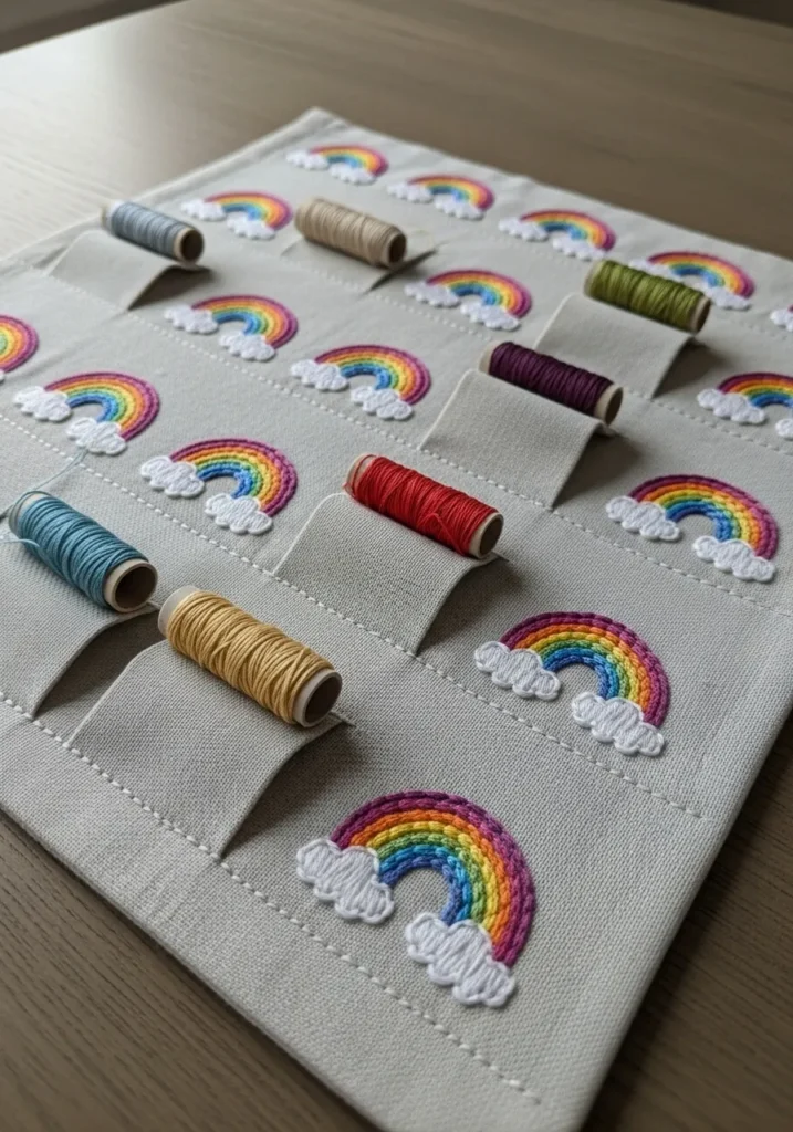 I love organizers like this because they make tidying up feel fun instead of boring. Seeing colorful thread lined up under cheerful rainbows instantly brightens a craft table. It also feels like a beginner friendly project since the design is simple but still looks adorable when finished.