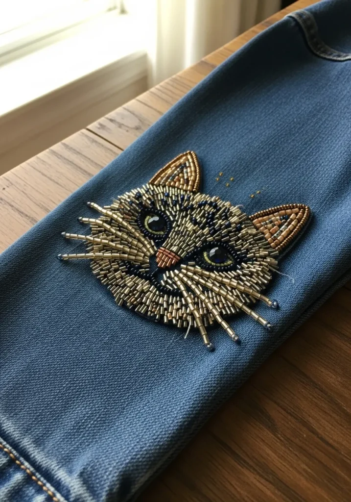 I love how personal this kind of project can be. You can choose your own initial or even spell out something meaningful. If you are into customizing jackets, bags, or jeans, a beaded letter patch is such a fun way to stand out. Stitching the beads in curved lines is surprisingly relaxing, and watching the texture build up makes it feel extra special. It turns a simple piece of denim into something that feels totally yours.