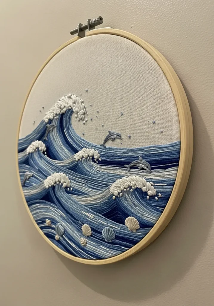 Ocean Wave Embroidery Hoop Art