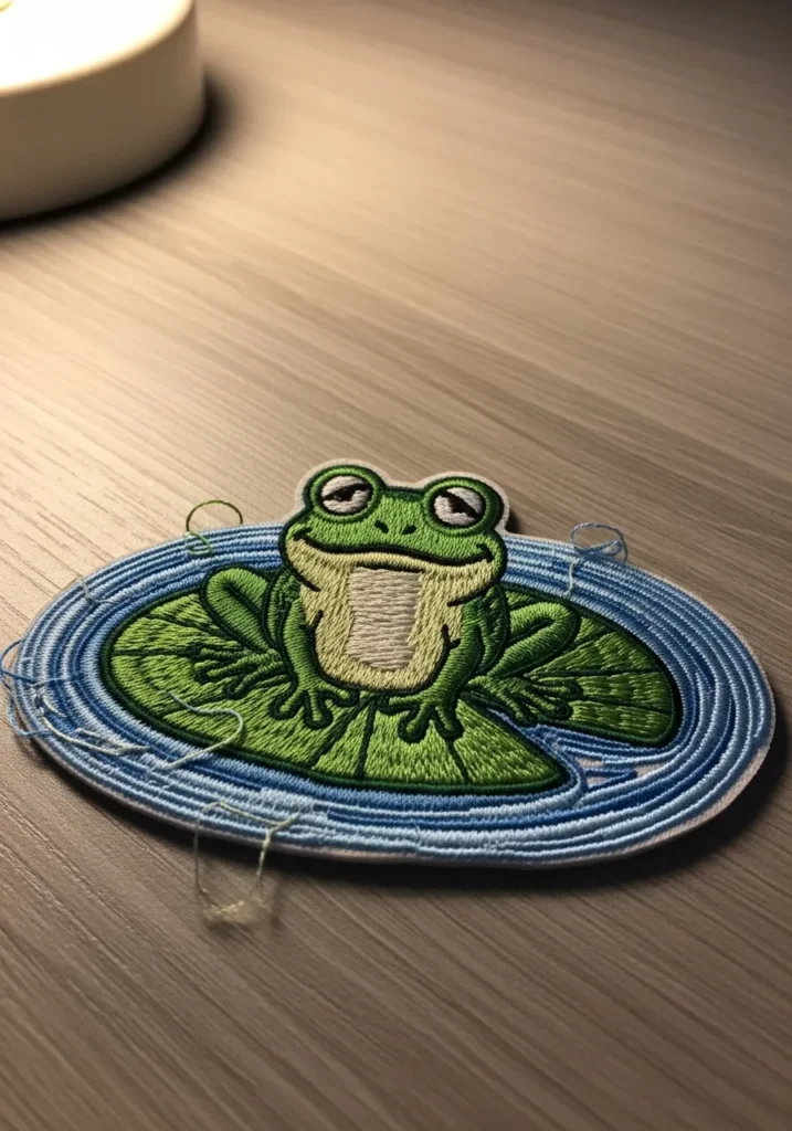 Frog On Lily Pad Embroidered Patch