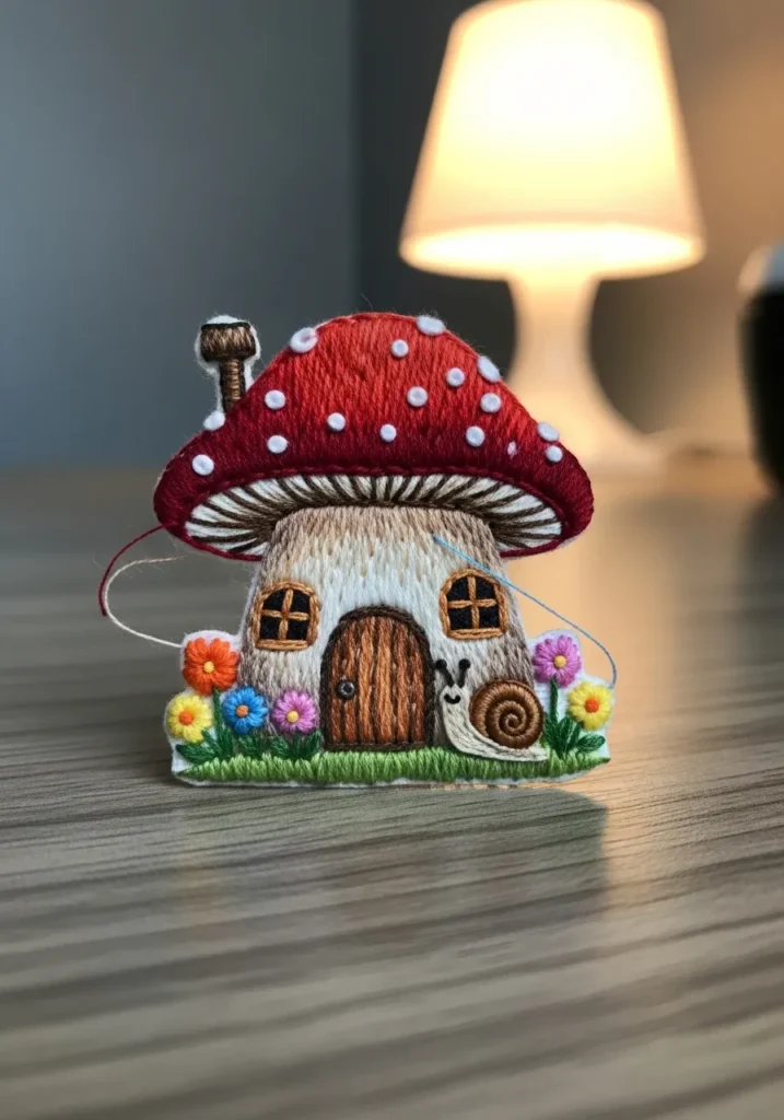 Whimsical Mushroom Cottage Embroidery